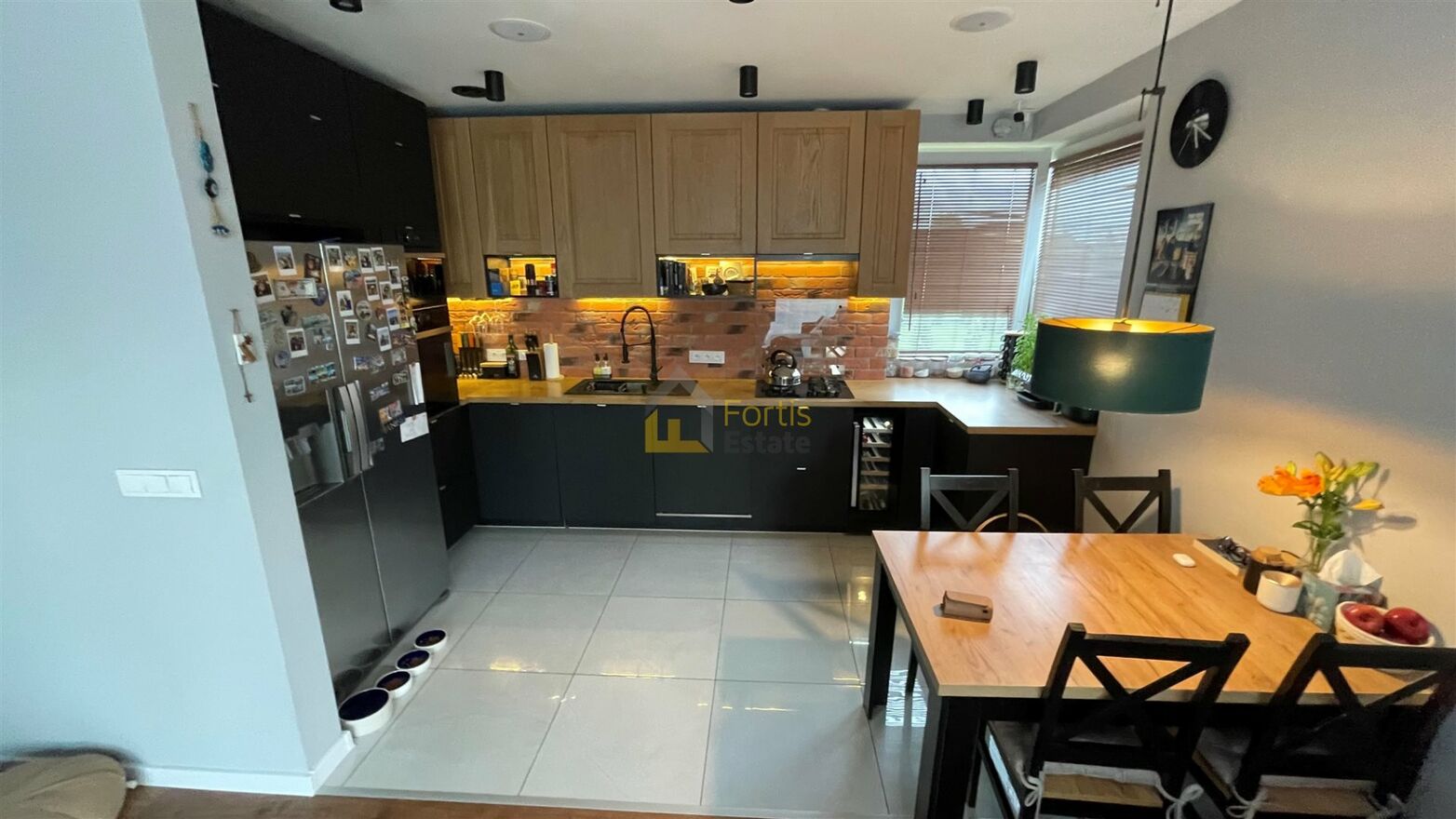 - salon z aneksem kuchennym (meble kuchenne na wymiar z oświetleniem wnętrza szafek), AGD w zabudowie: płyta gazowa Whirlpool, mikrofalówka Whirlpool, piekarnik Whirlpool, chowany okap podszafkowy Whirlpool, duża zmywarka Amica 60cm (3 szuflady) z oświetleniem w tym jedna z regulowaną wysokością, lodówka na wino Candy z oświetleniem);